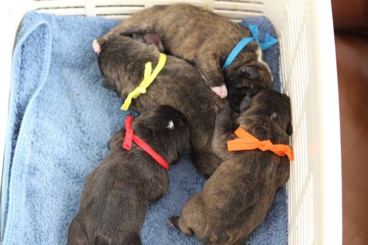 ブリンドル 男の子 2頭 (ブルーリボン、黄色リボン
